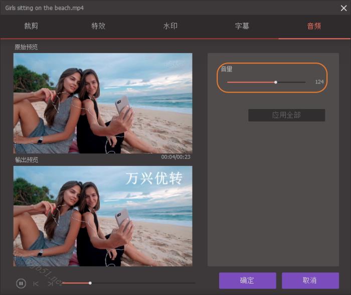 提示: 如果您要调整视频的音量,只需点击编辑窗口上方的音频。