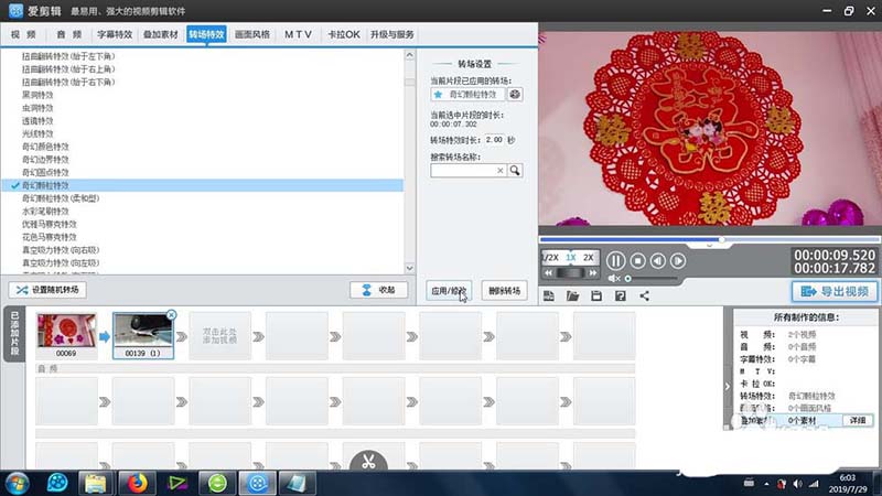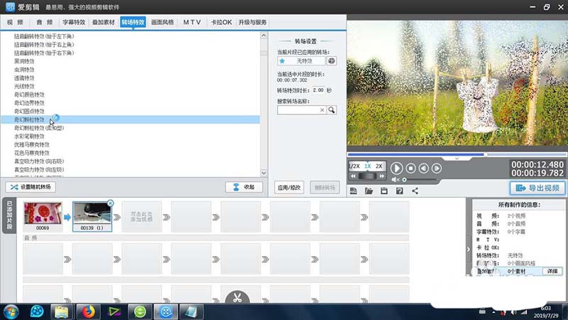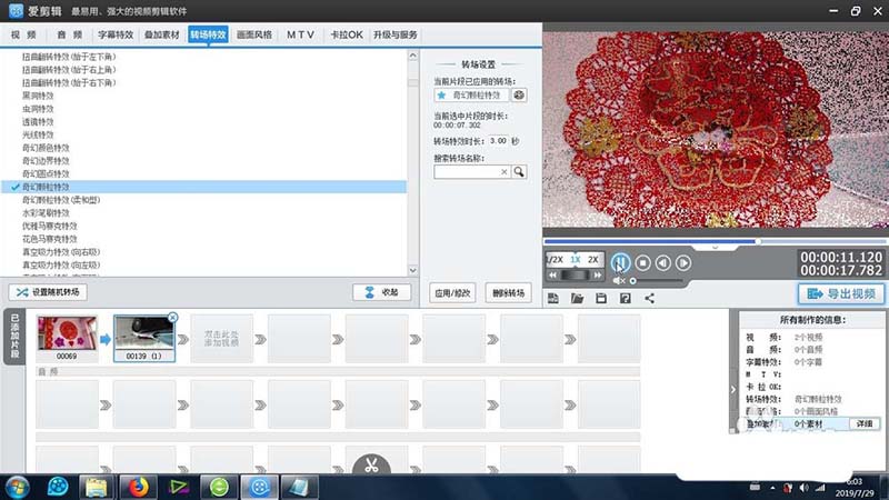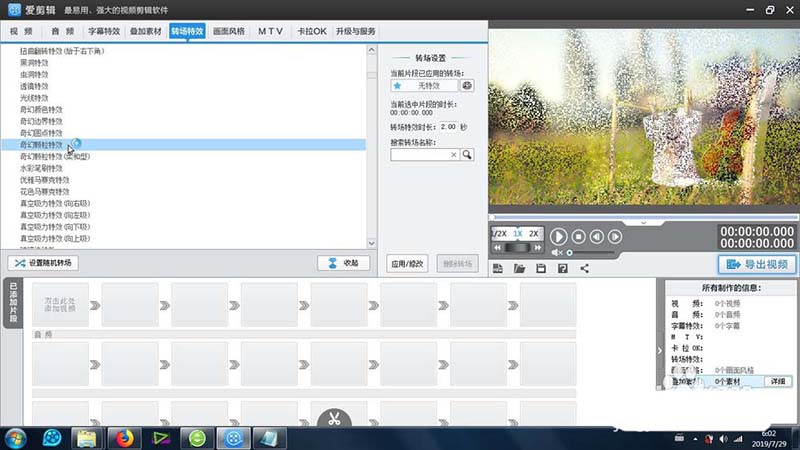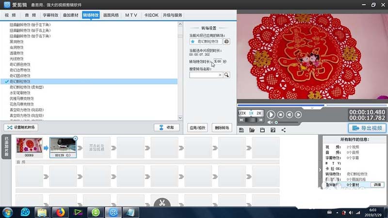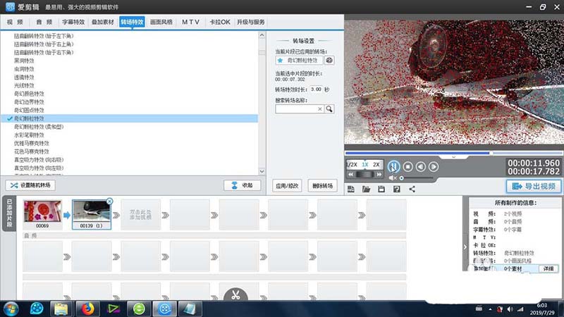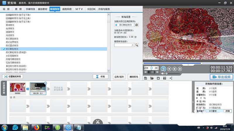 爱剪辑中自带了很多转场特效,该怎么使用奇幻颗粒效果呢?下面我们就来看看详细的教程。