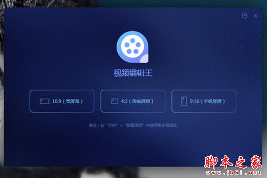 1、 首先需要先进入到视频编辑王的界面之中,在刚进入软件时,将会出现屏幕的选择窗口,你可以选择宽屏幕、传统屏幕或手机竖屏三种选项,默认选择“传统屏幕”即可,如果用户想要在之后的使用过程中进行修改,则可以在“文件”栏的“新建项目”中使用更多的宽高比,如下图所示: