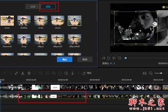 4、如果你还想要调整编辑画中画的样式,还可以在蒙版中进行选择,其中就包含皇冠形、心形、云朵形等,你可以自定义选择适合整体视频风格的样式,如下图所示:
