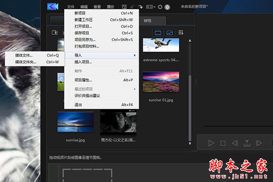 1、威力酷剪可以帮助用户更好的进行运行视频的编辑,如果你利用这款软件往视频中添加文字,肯定是要先添加视频才行,点击上方栏目中的“文件”选项,选择其中的导入“媒体文件”进行视频的导入,如下图所示: