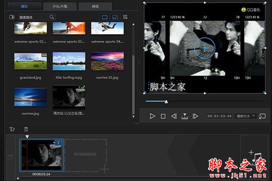 2、在媒体素材库中找到视频素材,将视频拖动到下方的编辑窗口中,大家可以在右上方的播放窗口中看到除了MV视频中自带的水印,并没有文字存在,如果你想要添加文字,只需要点击红框标注的功能选项,此功能可以帮助用户修改所选片段的标题效果,如下图所示: