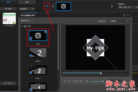 4、在上方点击模板后,将封面图片放置到“1”中,将视频素材放置到“2”中,如下图所示: