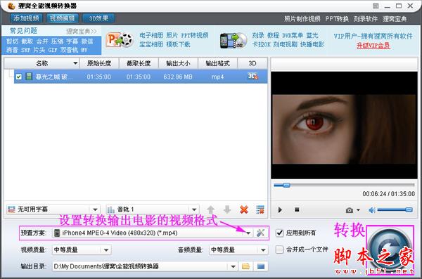 最后我们需要返回到主界面之后,用户请在“预设方案”处,选择视频文件的输出格式,再一键点击右下方的“转换”功能图标按钮就可以啦。