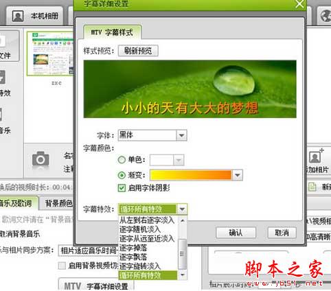 最后弹出字幕详细设置的界面,大家就可以在其中设置歌词字幕的字体、颜色以及特效了,如下图所示:
