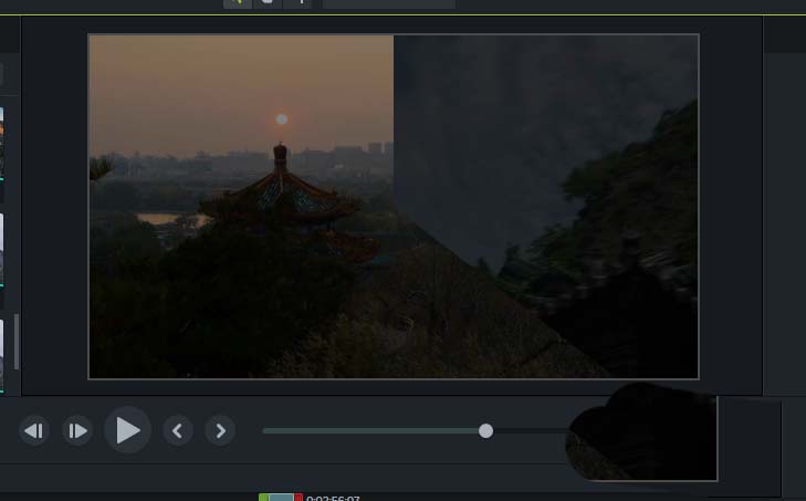 6、点击Camtasia 9项目的播放按钮,播放时间轴项目,当时间轴播放到转场位置的时候,就可以看到径向擦拭的转场。