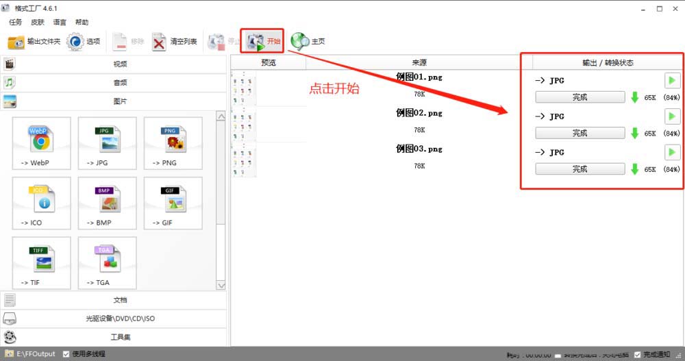 3、点击“开始”进行转化,等待一定时间后即可完成。