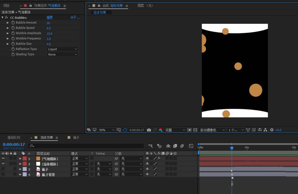 4、继续新建一个纯色层,添加气泡效果CC Bubbles;效果-模拟-CC Bubbles;调整相应的参数;