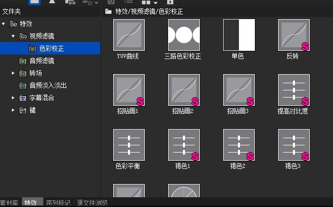EDIUS的特效有视频滤镜、音频滤镜、转场、音频淡入淡出、字幕混合、建,这里介绍视频滤镜,它的作用是进行色彩校正,如图,