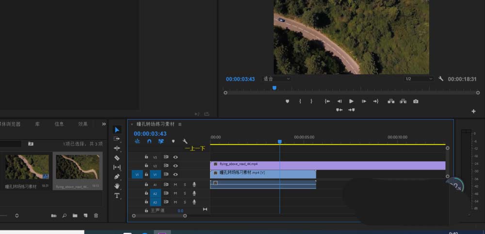 2、这里注意了,视频两个是一上一下,不是叠加的,可以理解为两张纸叠再一起,上面的视频覆盖着下面的素材