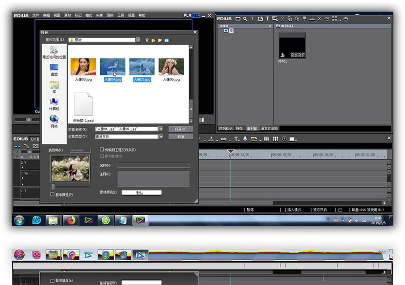 2、将素材库里的图片或者视频拖拽到时间线上的视频轨道