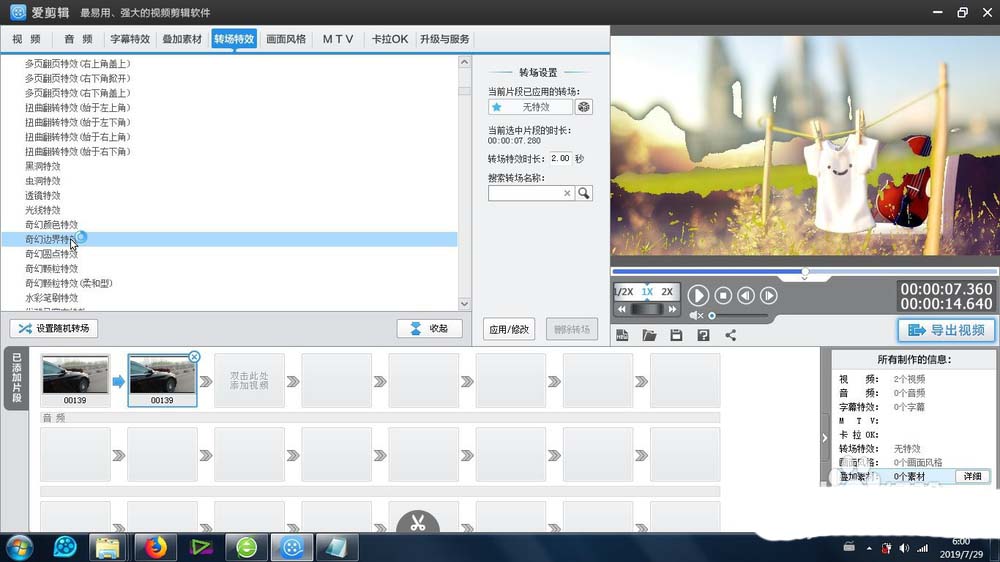 1、首先这个奇幻边界特效 -是在爱剪辑里面的转场特效-3D或专业效果类-里面可以找到