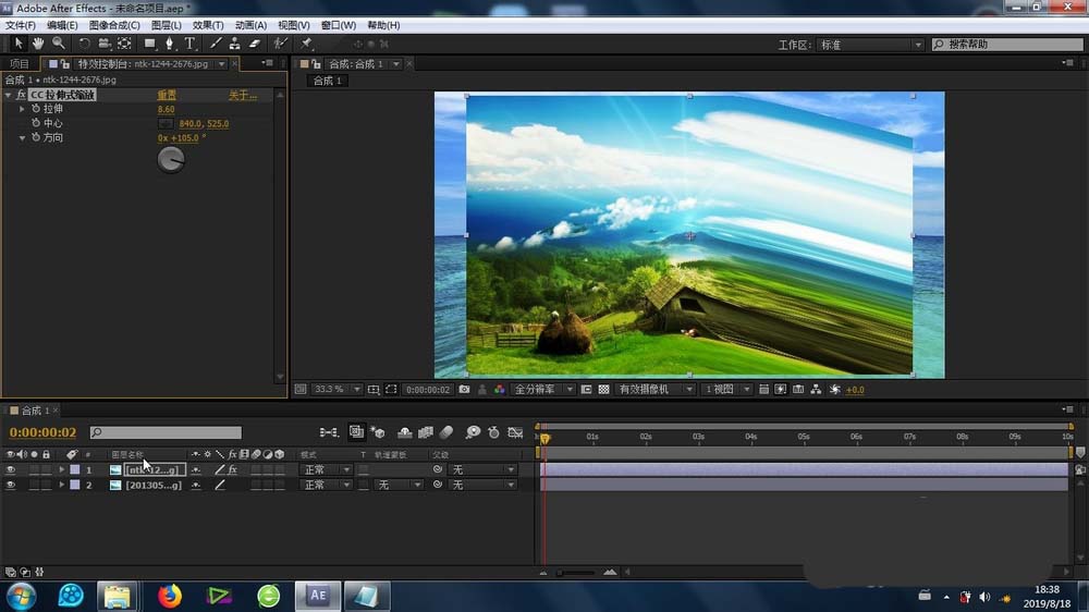 2、根据素材的大小,适当缩放,以便于最后效果的预览