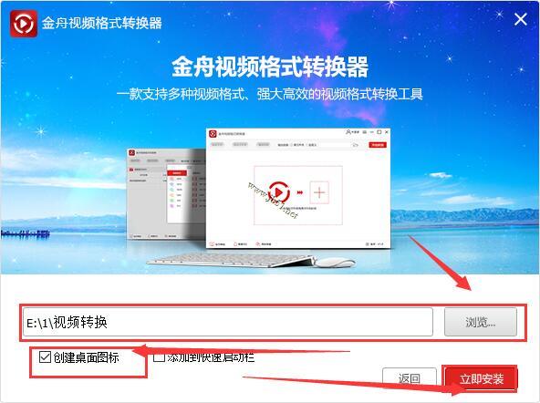 3、点击“浏览”更改软件安装目录,创建桌面快捷图标,点击“立即安装”