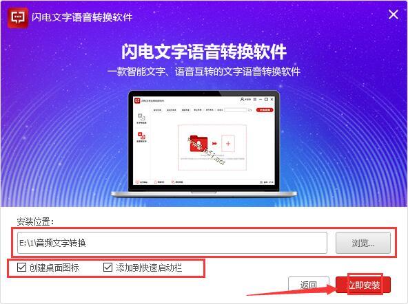 3、点击“浏览”更改安装目录,创建桌面快捷图标,点击“立即安装”