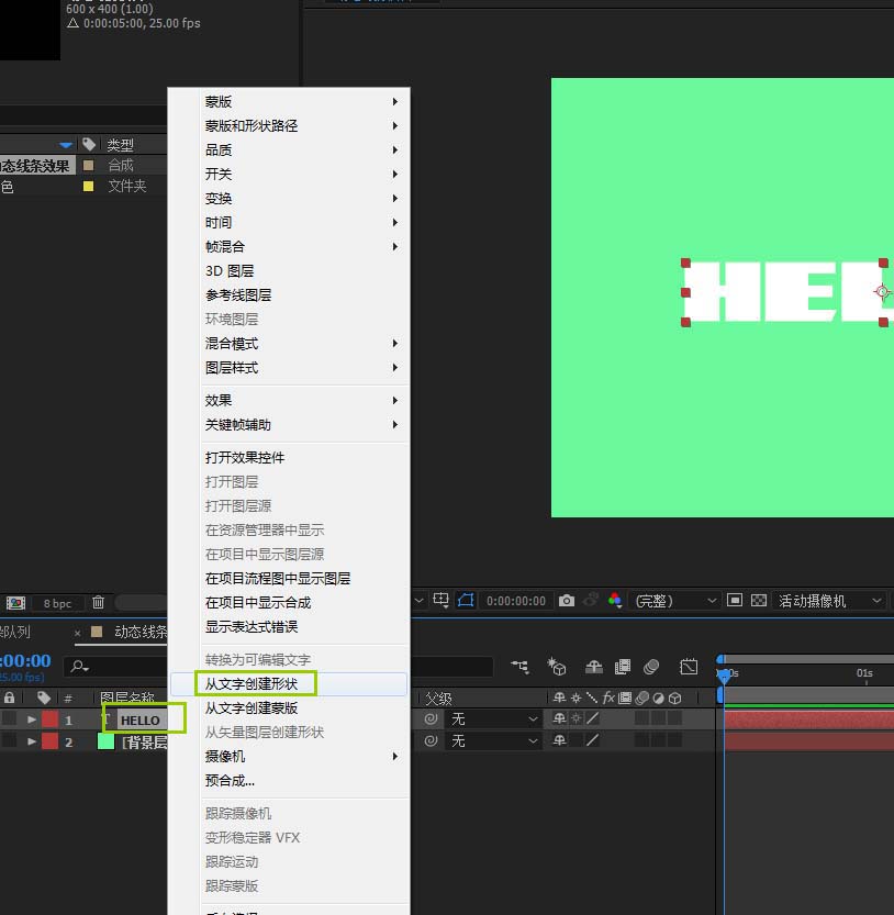 4、选中文本图层右击选择从文字创建形状;之后就会生成一个既有轮廓又有填充的矢量图层;