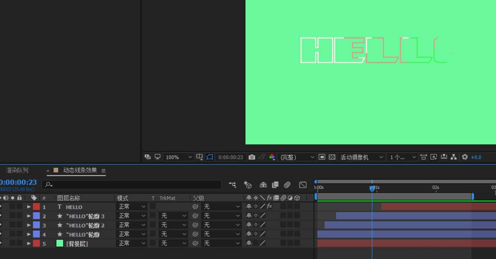 选中轮廓文本图层,ctrl+d复制几层,然后修改颜色,错开显示时间,这样就有多重的颜色路径效果了;