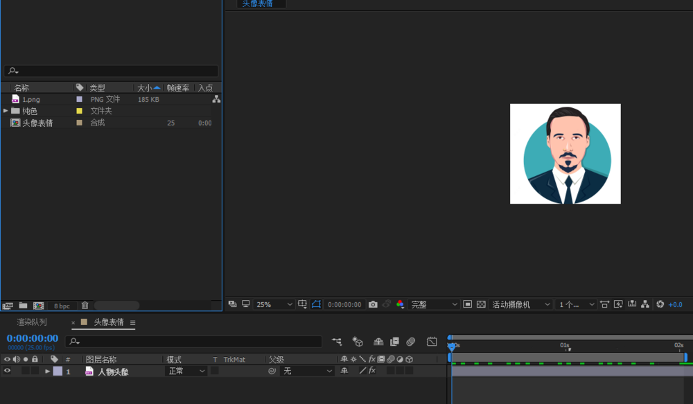 2、ctrl+i导入实现准备好的人物头像素材,并把素材图片拉入时间线面板;