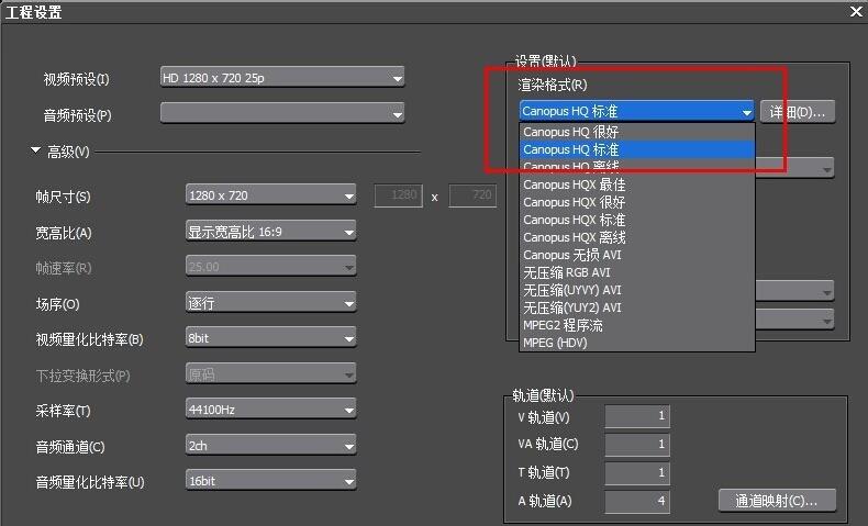打开【工程设置】窗口,点击【预设列表】——【更改当前设置】,