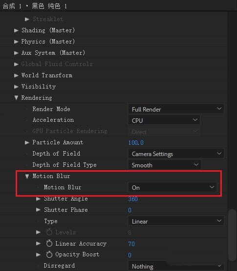6、为了效果更好,大家也可以在效果控件最下面,有一个渲染,更改里面的把里面的运动模糊打开效果会更好!