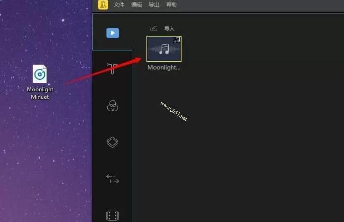 2、除了可以在软件中点击“导入”来添加音乐外,也可以直接用鼠标将音乐文件拖入软件的素材区。