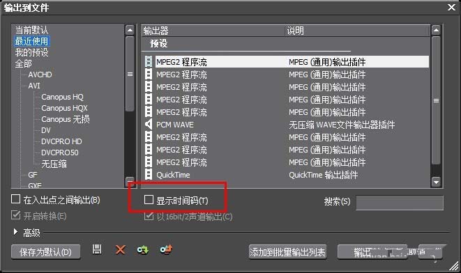 1、在输出的设置窗口里面,注意找到“显示时间码”的勾选框,输出的时候,不要勾选即可。