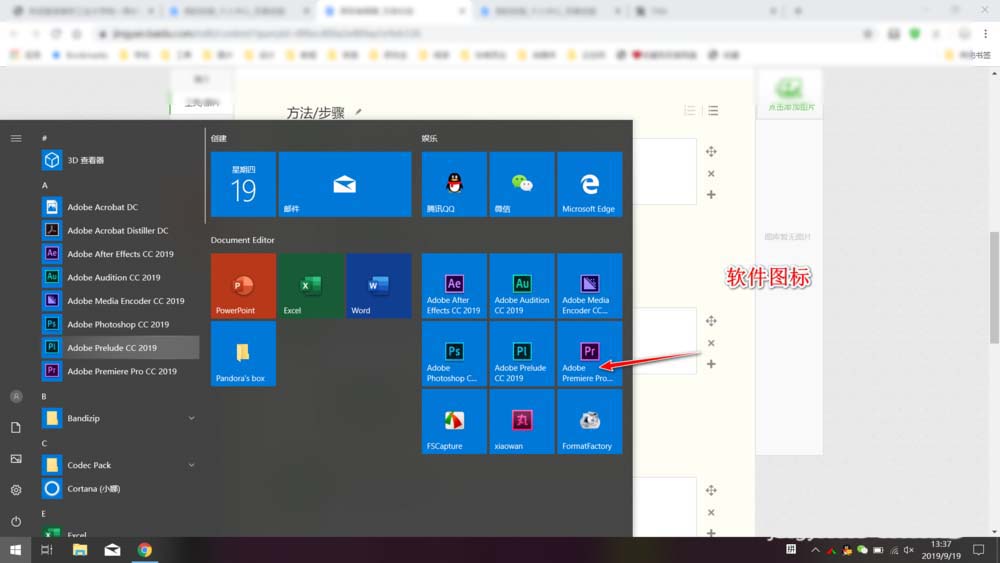 1、首先,我们点击打开Premiere软件,其图标如下图所示。