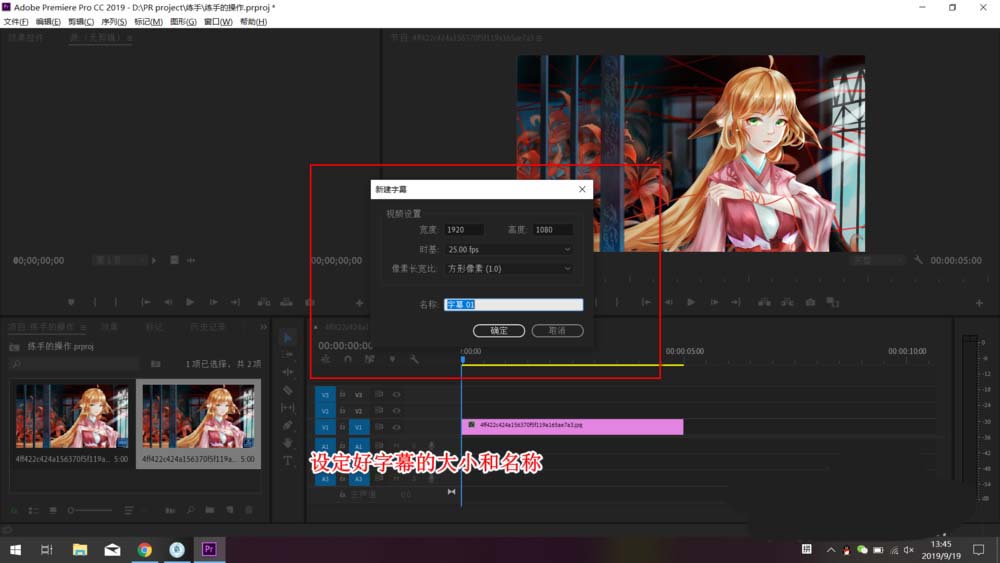 4、接下来,会弹出旧版标题的字幕设置,可以改变字幕大小的宽高尺寸,像素以及字幕的名称,方便识别。