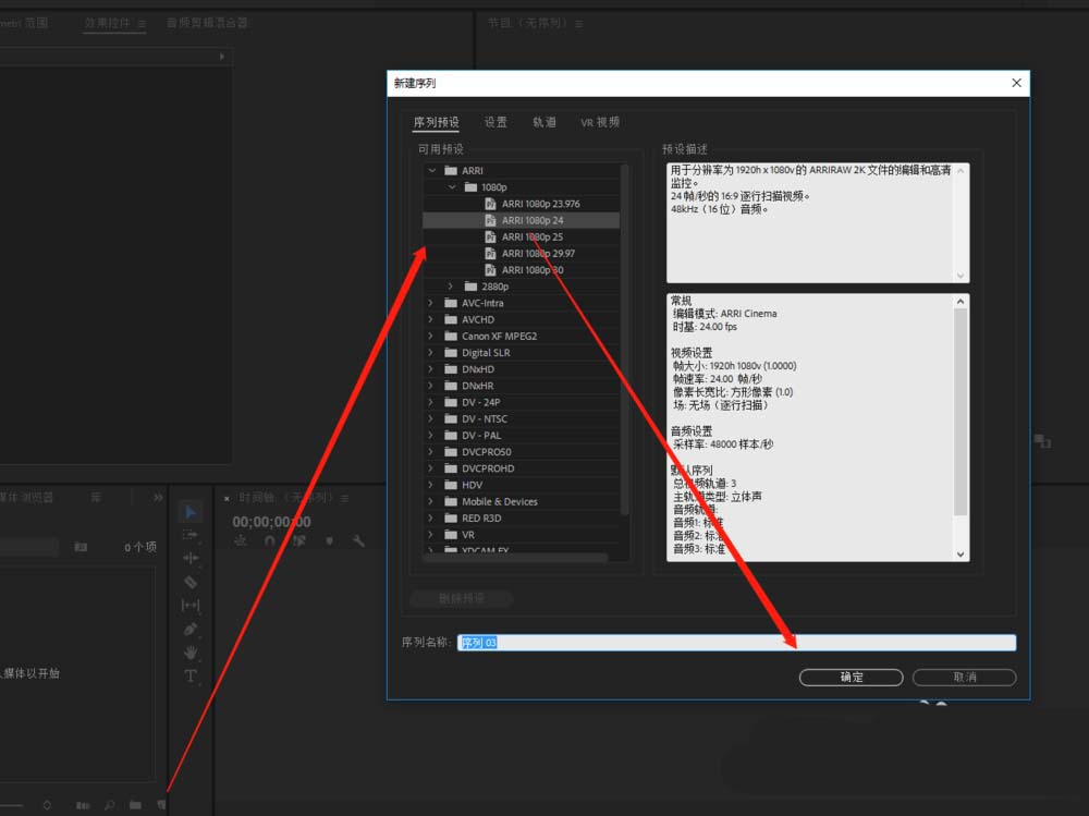 1、安装好Premiere软件,双击其快捷图标启动PR,新建项目,然后在新建序列,在新建序列窗口中选择序列或设置序列点击确定。