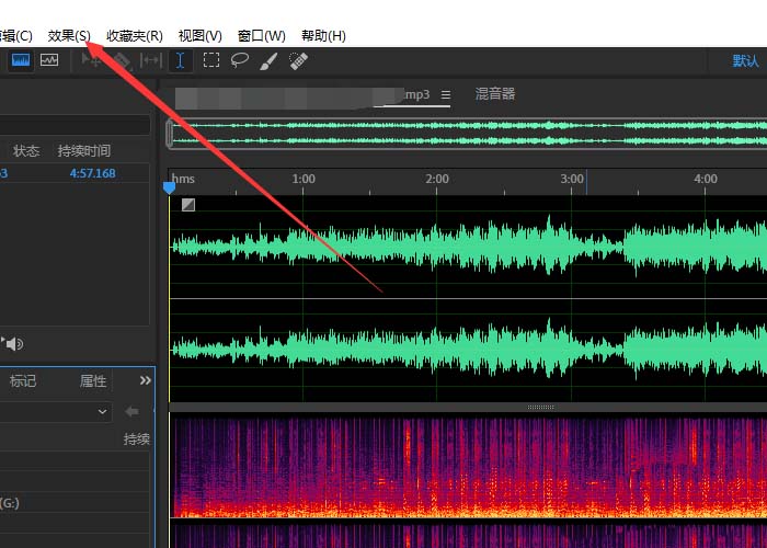 1、在Adobe Audition CC 2019导入音频文件后单击“效果”选项。