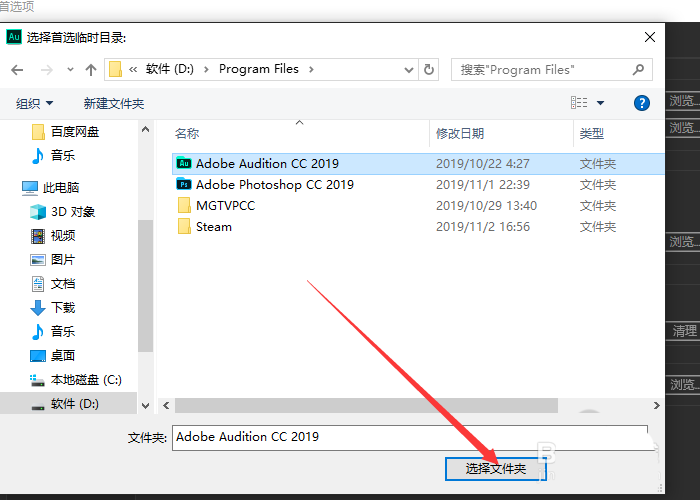 4、打开选择首选临时目录对话框中更改的缓存路径后单击”选择文件夹“按钮。