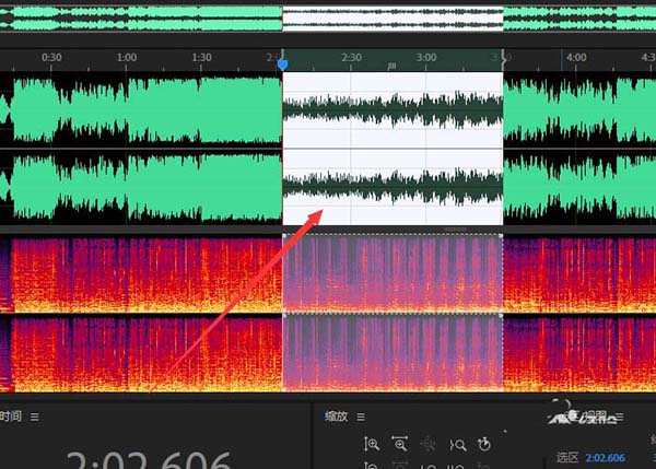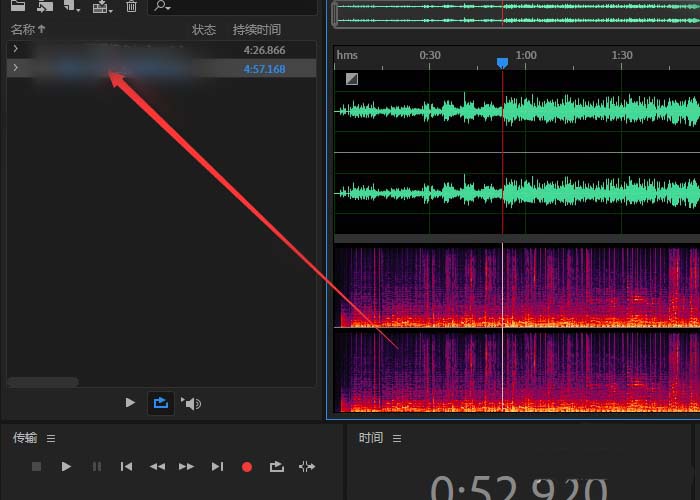 2.单击要粘贴的音频文件后再频谱中要粘贴的位置。