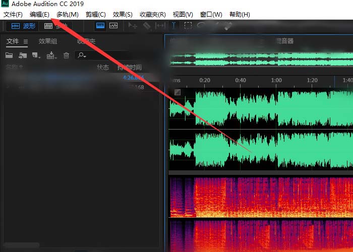 1、在Adobe Audition CC 2019中打开要从中复制的音频片段文件和粘贴另一个音频的文件。