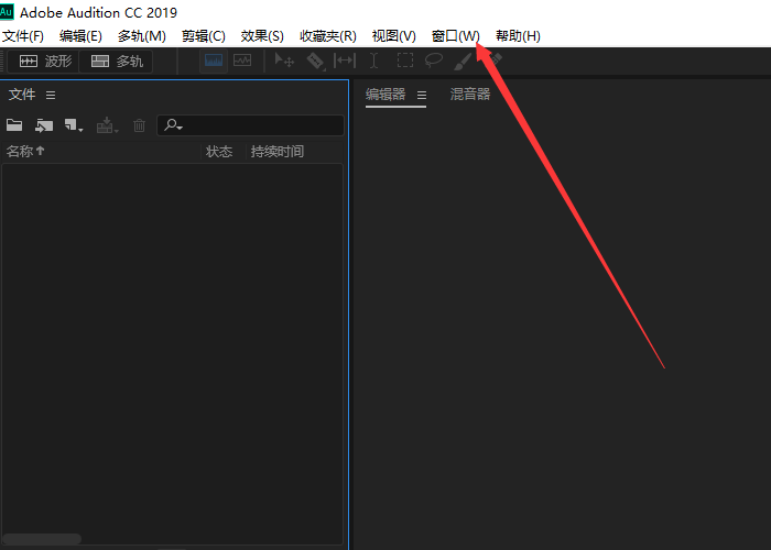 2、打开Adobe Audition cc 2019界面中单击“窗口”选项。