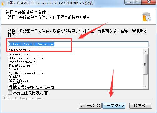 7、创建开始菜单,点击下一步