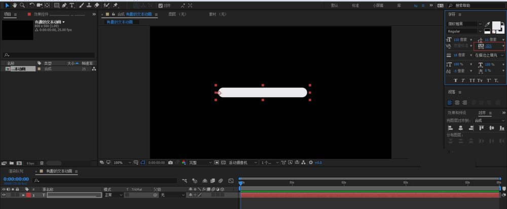 1、打开AE软件,命名有趣的文本动画,调整相应的参数。