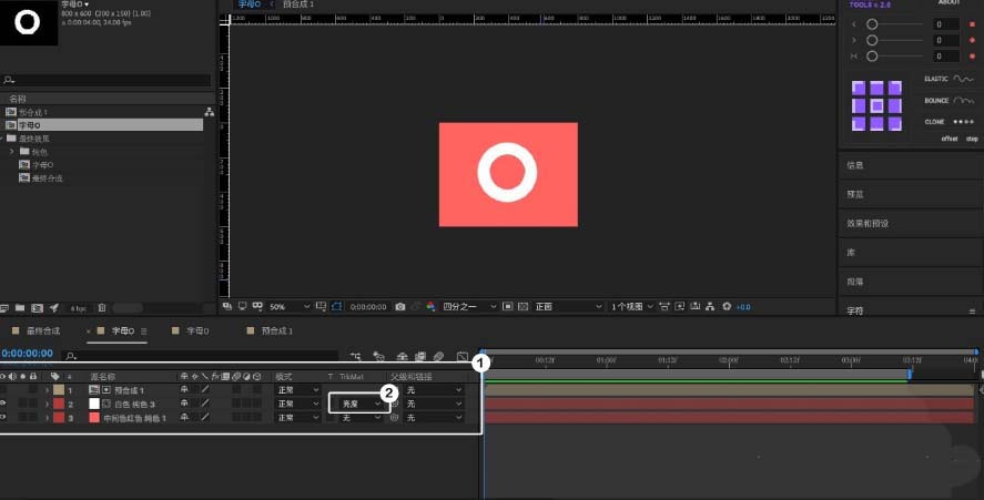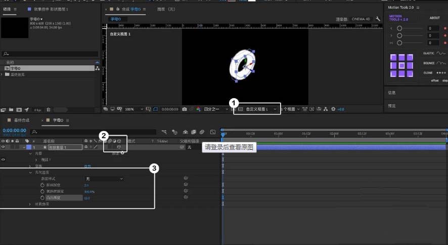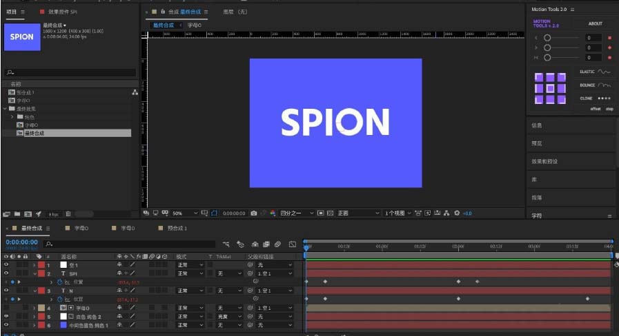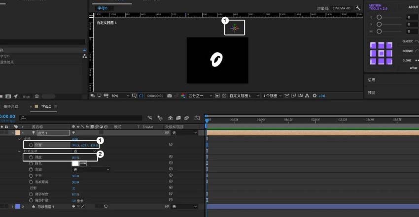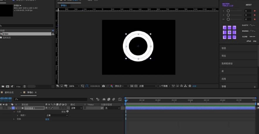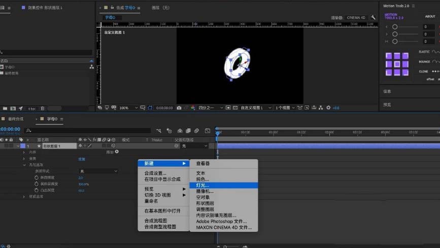 14、创建英文字母并摆放好位置根据O的动态变换,调整字母「位置」并未位置也粘贴上「表达式」最终细调「预合成」中的「灯光」效果。就完成啦