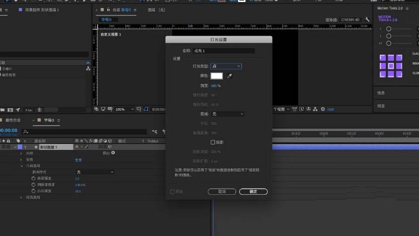 7、通过调节灯光的「位置」参数将灯光调整到o的右上方并且将灯光「强度」改为800其余的参数可根据实际情况调整位置也可以根据后期的实际效果来调整