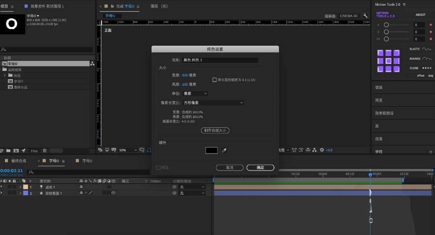 1、首先创建一个800*600像素24帧的合成,并在「3D渲染器」选项中,修改为CINEMA 4D