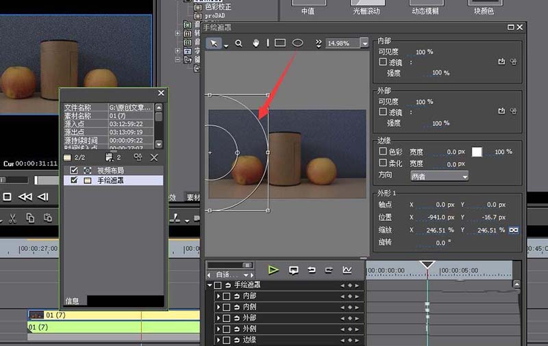 4、在信息面板中打开“手绘遮罩”,在需要景深模糊的地方用椭圆工具进行圈划。