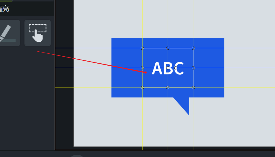 2、然后点击左侧的注释,点击水滴的图案 找到第4个图标添加交互式热点,有一个手指点触的图案的样子,直接把它拖拽到右侧的预览窗口上