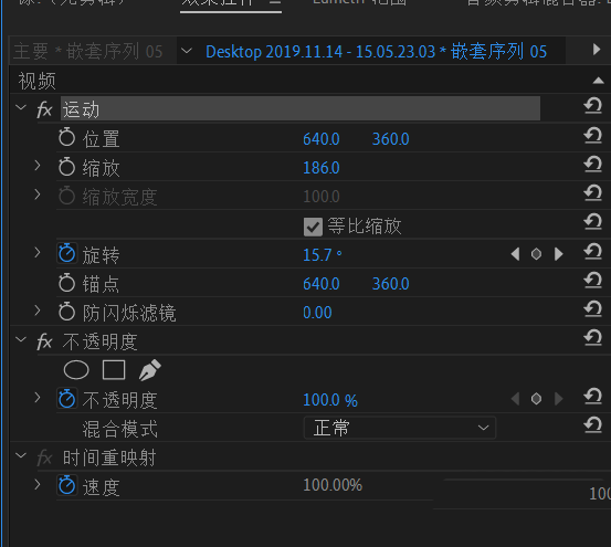 4、我们把这个视频进行一份复制,这并在左上方的效果控件面板中,找到旋转这个选项,输入180度,