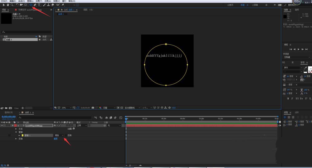 3、在文字图层上按住shift键绘制一个圆形的模板