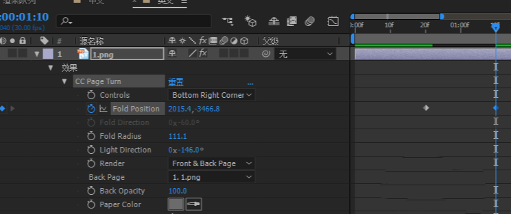 5、添加好后就设置关键帧了,给“Fold position”打上关键帧,第一帧处的值