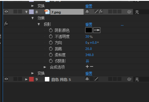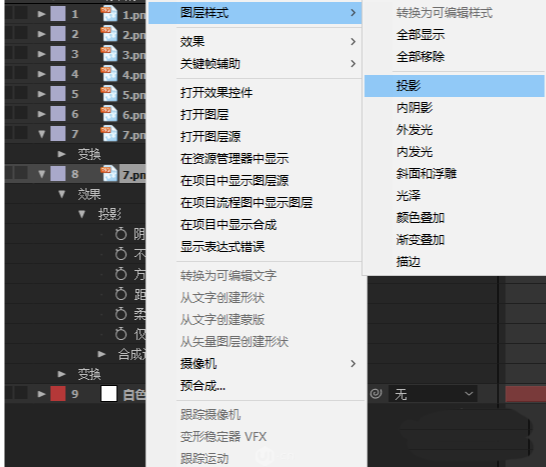 9、然后右键给最下面的图层7添加投影