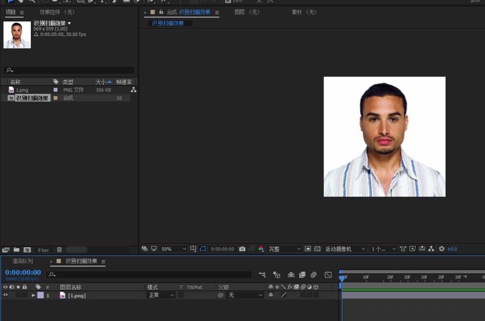 1、打开AE软件,命名识别扫描效果,调整相应的参数。