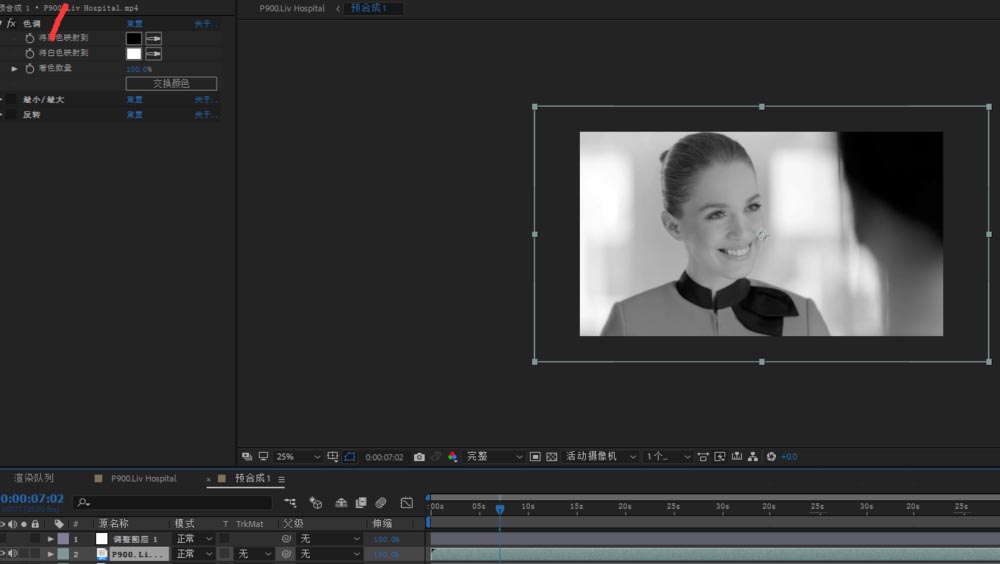 1、首先选择素材,复制一份在上面素材中选择去色