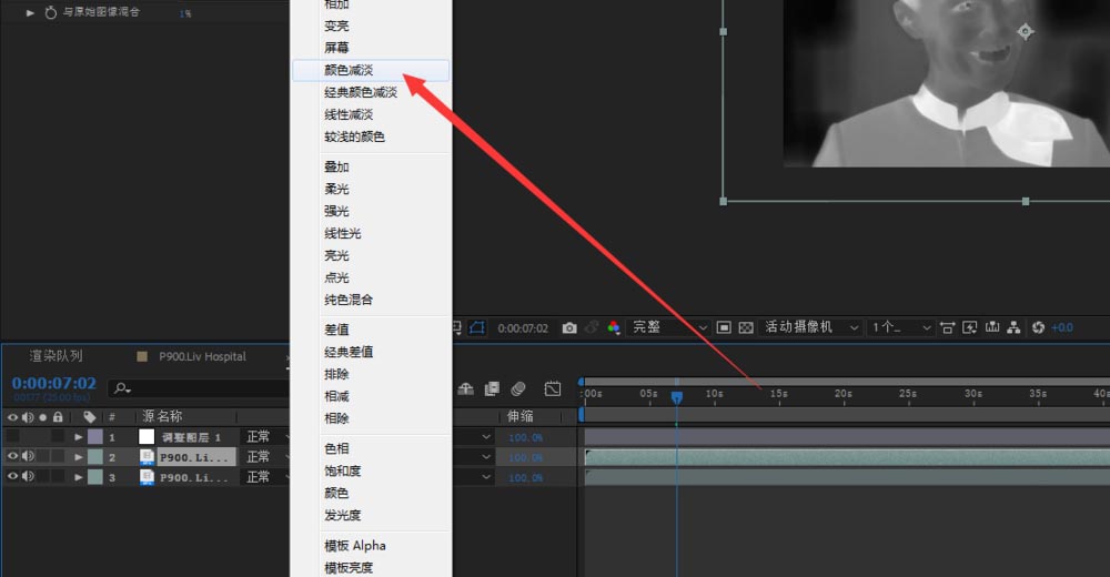 4、调整叠加模式,颜色减淡模式