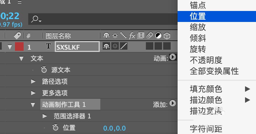 2、选择文本右边的动画,添加位置效果。