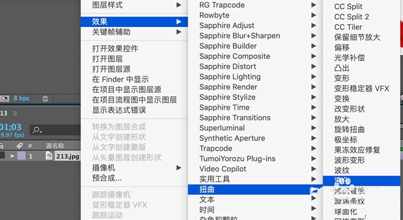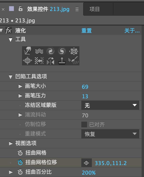 3、在效果与预设里面搜索液化。效果--扭曲--液化。